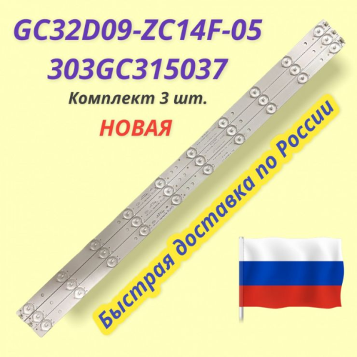 GC32D09-ZC14F-05 303GC315037 (аналог 303GC320044 GC32D09-ZC21A-07) Подложка аллюминиевая Количество светодиодов в 1 линейке: 9 Цена за комплект. В комплекте 3 штуки. НОВАЯ